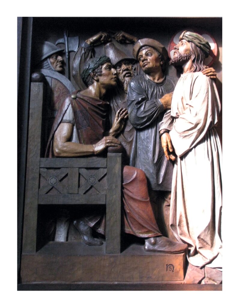 Jesus hat sich mit dem Königstitel schwergetan. Jedenfalls hat er ihn selber nicht verwendet. Obwohl er durchaus messianisches Bewusstsein hatte – König wollte er nicht heißen. Er wollte nicht sein, was allgemein damit verbunden war: Egoismus, Macht, Gewalt. Pilatus war es, der ihn schließlich so genannt hat: Die Kreuzesinschrift, wie sie bei Hinrichtungen Brauch war, hält genau diesen Titel fest: Der König der Juden. Zum Spott für ihn und für die Juden.