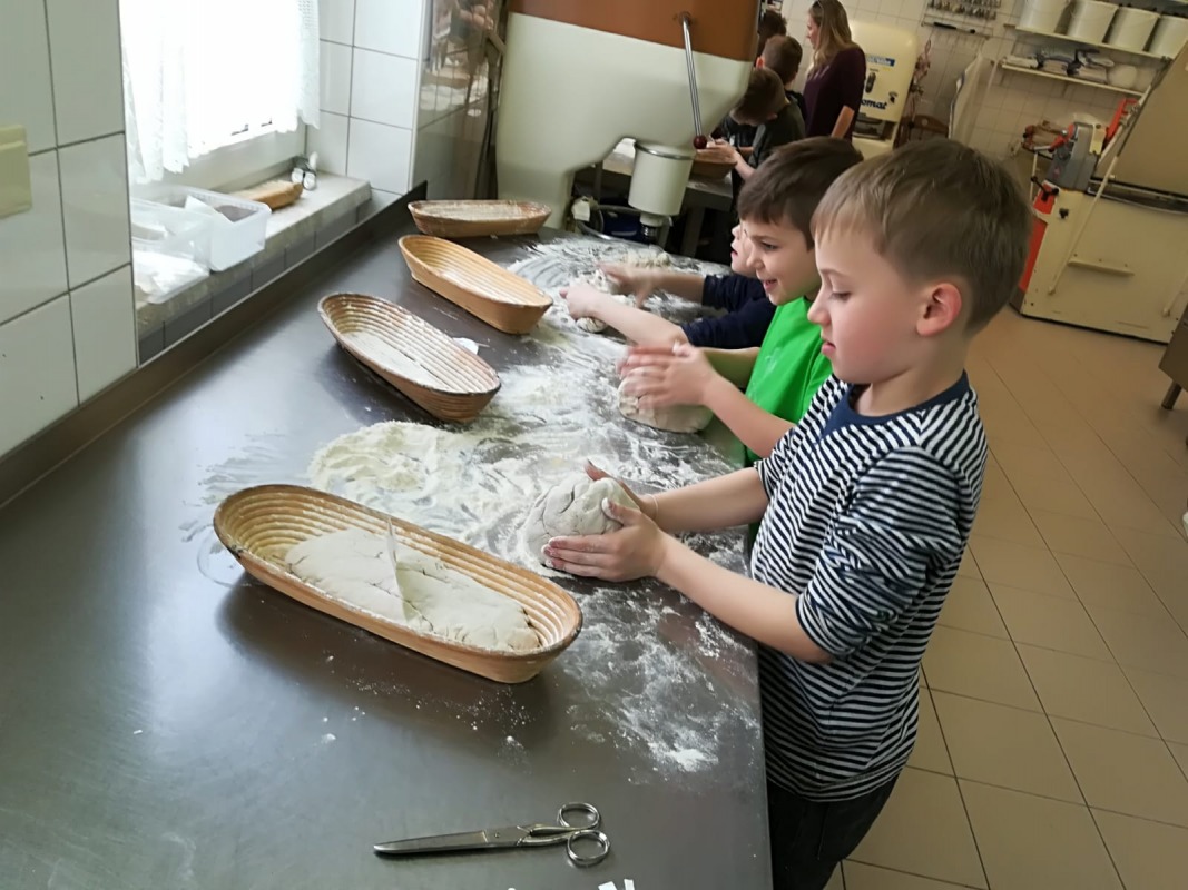 DIE ERSTKOMMUNIONKINDER BACKEN BROT